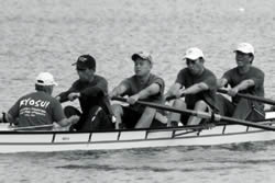 8月7日(日)に東郷町の愛知池漕艇場で開催された東郷町民レガッタに陵水艇友会として出場し、見事 初優勝を飾りました。この大会は東郷町主催で今年で22回め、参加数は149クルー、745名とかなり大きな大会で陵水艇友会としては昨年に続いての参加です。我々の出場したカテゴリーでは500mレースを2回漕ぎ、その合計タイムで順位が決まります。今回ボート部OB10名で2クルーを編成し、2回のレースとも陵水艇友会がスタートから飛び抜けるぶっちぎりの1位でゴールイン。応援する方も見ているだけでスカッとしたいい気分でした。来年もぜひ連覇を狙いたいものですね。